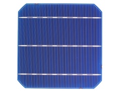 | 正面 (-) | 3根1.5 mm寬的主電極 (銀),堿腐蝕表面,藍色的減反射膜(氮化硅) |